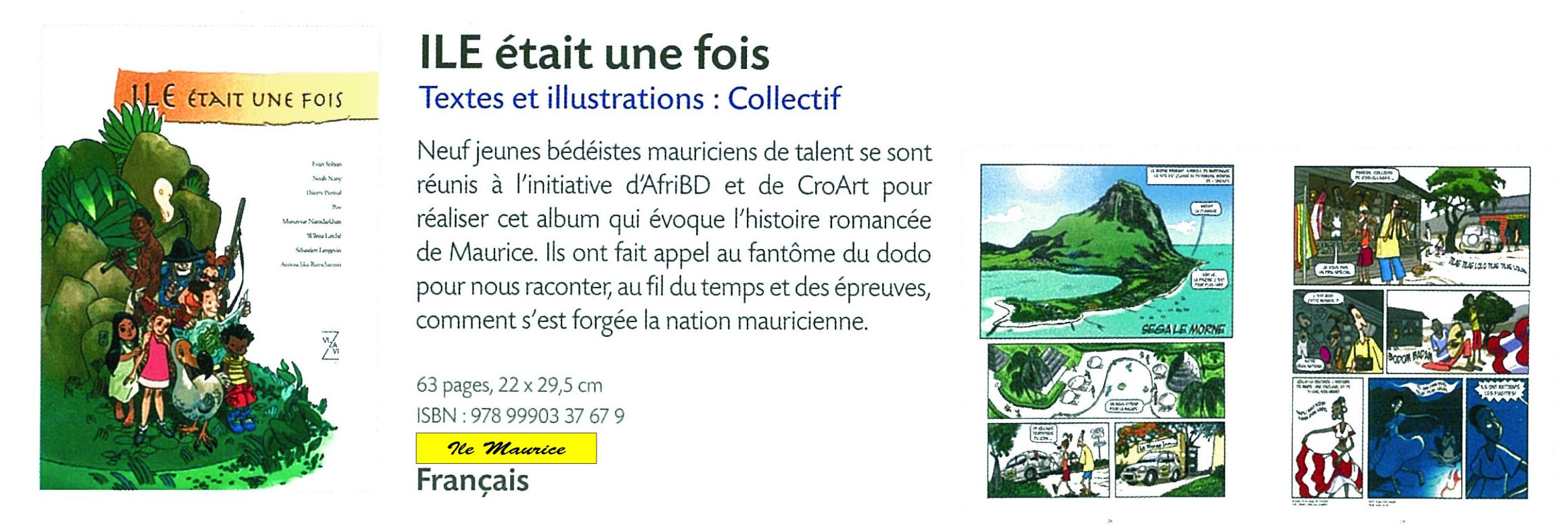 ILE était une fois Auteurs : collectif Nombre de pages : 63 Date de publication : 2011 Neuf jeunes bédéistes mauriciens de talent se sont réunis à l’initiative d’AfriBD et de l’association CroArt pour réaliser cet album qui se déroule en 8 chapitres, évoquant l’histoi ...En savoir plus